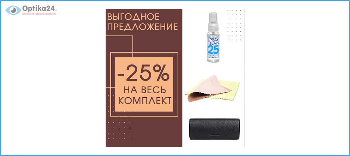 Спрей, футляр и салфетку для очков приобретайте со скидкой 25%. Скидка распространяется на всю сумму чека.